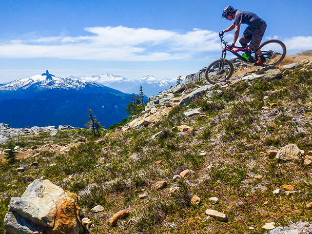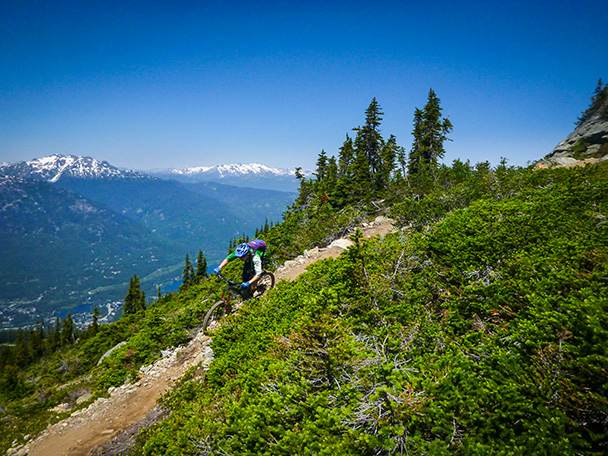 To the delight of many - especially those hoping to escape the sweltering heat of Fitz and Garbo zones - Whistler Bike Park opened their Top of the World trail in the Peak Zone on Friday July 12, 2014. Perfect blue skies and scorching sunny conditions (we're in a 30˚C every-day spell) meant endless views of snow-capped peaks, and flowy dusty trail all the way down.