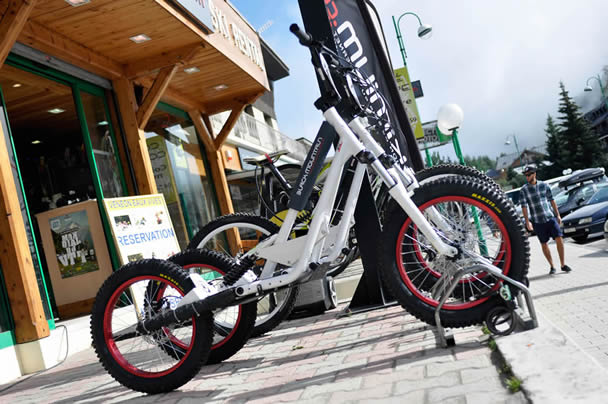 There are plenty of well-stocked bike shops in town, with many of the 35 sport shops renting quality bikes for all shapes, sizes and budgets. If you bring your own bike, a trip along the main drag will sort you out with most of the spares you may need. A good place to start would be Sport Emotion, conveniently located near the Vallée Blanche base station. Pascal hires out a range of bikes including top-of-the-range downhill rigs and these great DH scooters that seem to be rapidly growing in popularity!