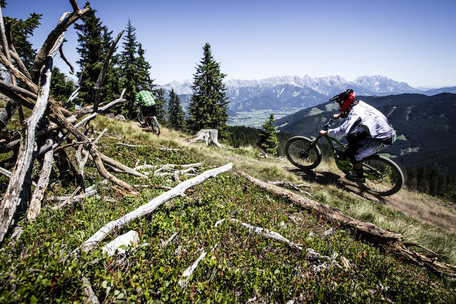Just as much fun can be found at Bike-Circus Saalbach Hinterglemm. Here, a trail of more than 400 kilometers (248 mi) weaves its way through the varied terrain. The freeride region is made up of various jumps, wide but steep berms, north shore elements, and peppered with technical rocks and roots. The Pinzgauer Grasberge is 1.000 meters (3.280 ft) of pure adrenaline. One of Europe’s longest freeride-tracks – the X Line powered by CONTI – is fitted with a clock to time downhillers as they race down the 6 kilometer (3 mi) track.